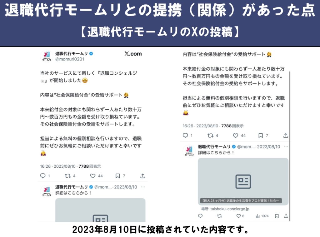 | 退職代行 との連携 | 関連性あり ※別途費用がかかる | なし | なし |